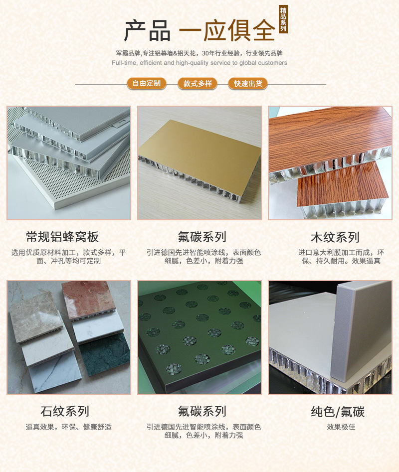 軍霸裝飾建材廠家,30年專業生產鋁單板、鋁方通、鋁窗花 、鋁格柵、鋁蜂窩板等金屬裝飾建材ICP17035549