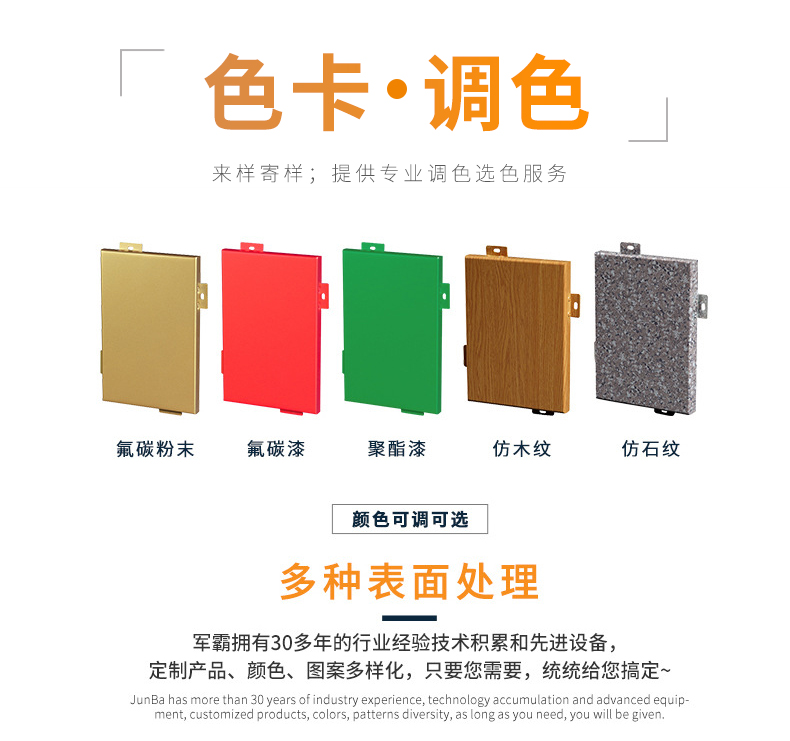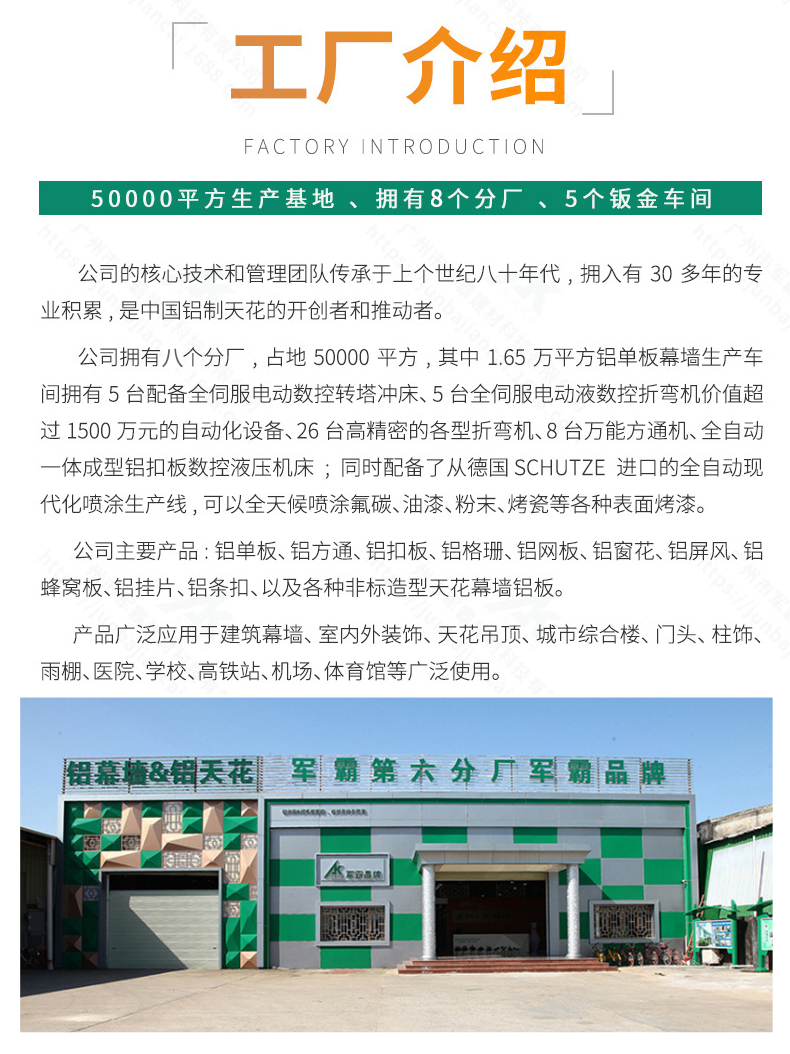 軍霸裝飾建材廠家,30年專(zhuān)業(yè)生產(chǎn)鋁單板、鋁方通、鋁窗花 、鋁格柵、鋁蜂窩板等金屬裝飾建材ICP17035549號(hào)